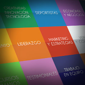 Calidad De Vida. Creatividad - Innovación - Tecnología. Deportistas. Economía y Negocios. Comunicaciones y Modernidad. Emprendimiento. Liderazgo. Marketing y Estrategias. Ventas y Coaching. Mujeres Destacadas. Recursos Humanos. Testimoniales. Trabajo en Equipo. Educación y Familia. Motivación Total.